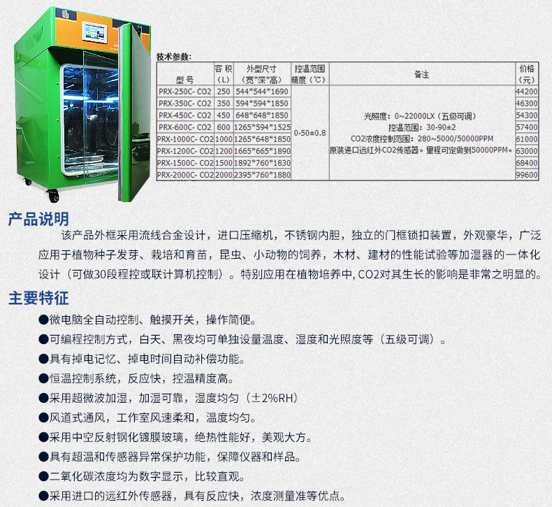 二氧化碳人工氣候箱產(chǎn)品介紹: